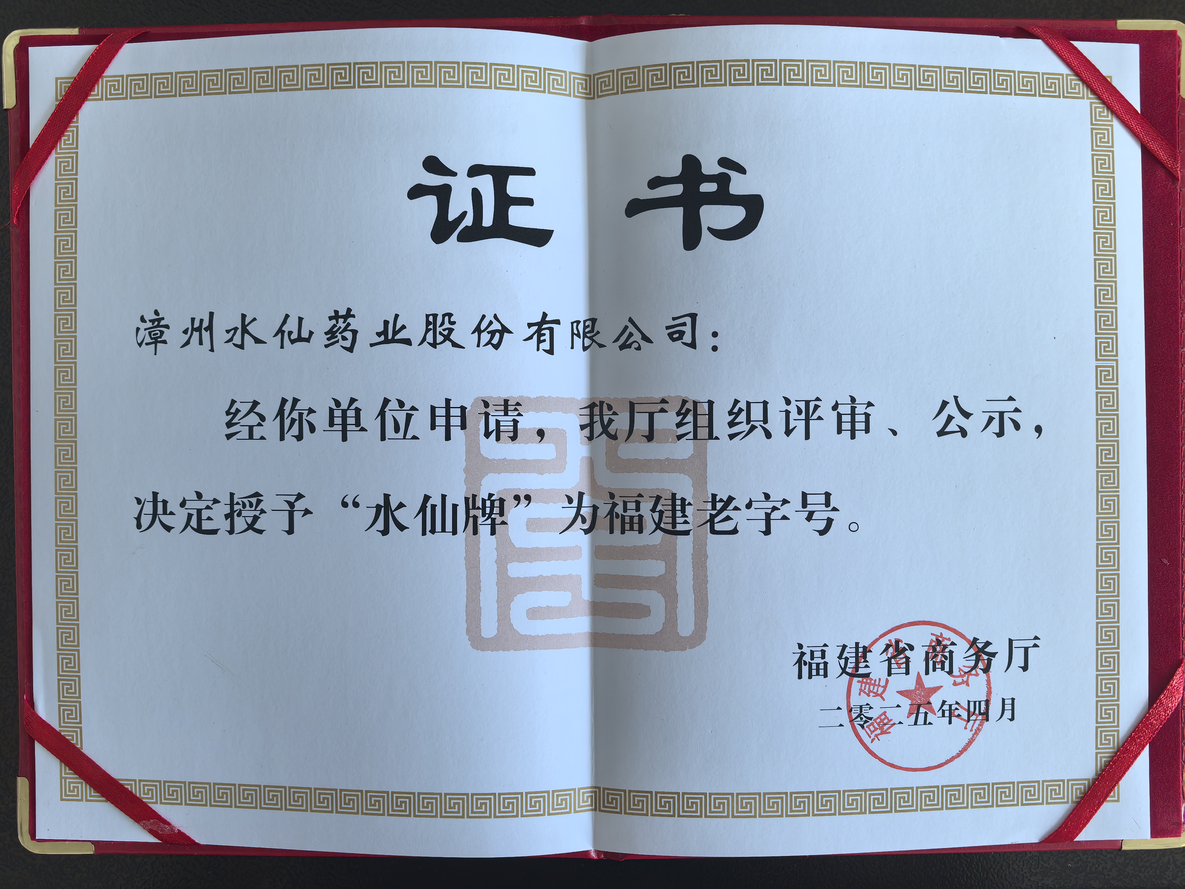 2025年6月27日,由福建省商務(wù)廳與漳州市人民政府聯(lián)合主辦的第七批“福建老字號(hào)”授牌儀式在漳州吾悅廣場(chǎng)舉行,漳州水仙藥業(yè)股份有限公司正式獲得授牌。公司副總經(jīng)理任冠群先生代表企業(yè)接受授牌。
